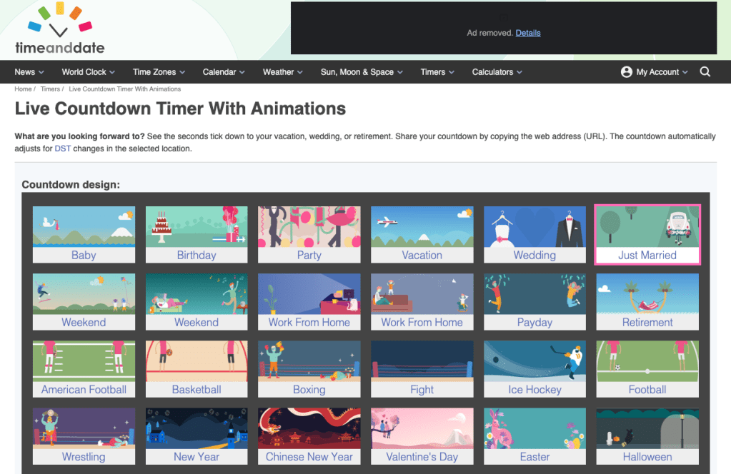 Who doesn’t love a countdown. Great for New Year’s Eve, product launches, the end of a sprint, or when your PTO kicks in.